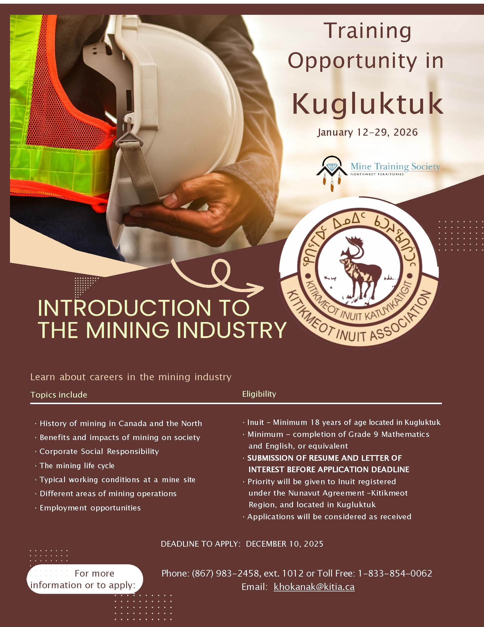 Introduction to the Mining Industry (Kugluktuk) DEADLINE TO REGISTER DEC 10/25